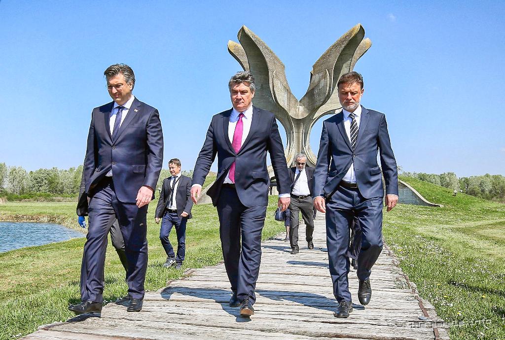 Andrej Plenković - Zoran Milanović - Gordan Jandroković - Jasenovac 22. apr 2020